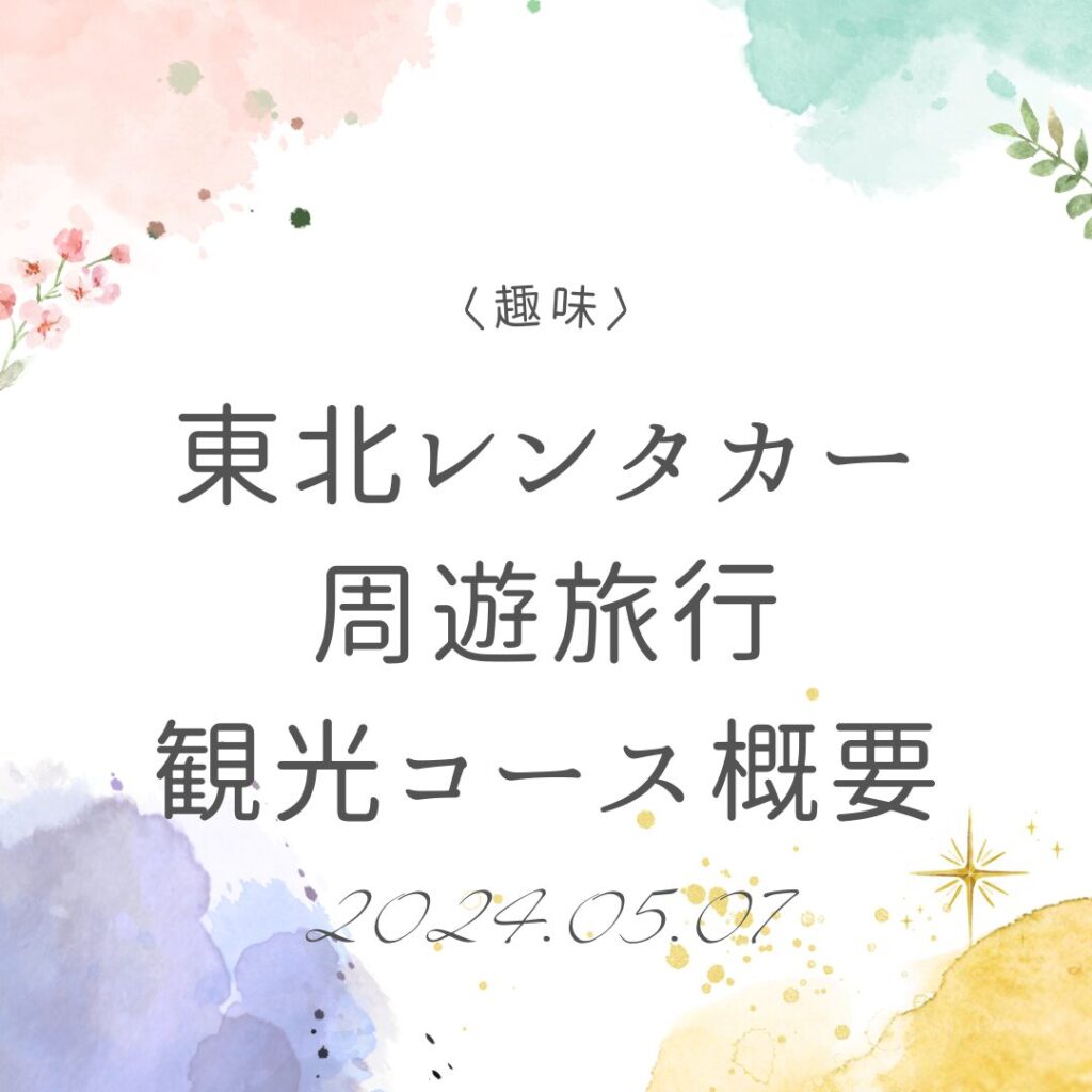 今回の記事では、GW中にレンタカーで東北周遊旅行をしたので、観光コースを概要を紹介しました。東北は広いので数日の旅行だと行きたいところ全部は観光できないので、あらかじめ当たりをつけて観光経路をイメージしておくのをおすすめします。次回以降の記事で、食べたものや観光した場所について写真を使って詳細に説明します!